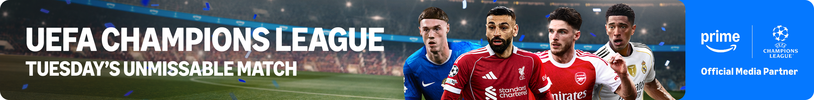 Amazon bringt die UEFA Champions League mit exklusiver Berichterstattung über das Dienstags-Topspiel zu Prime Video (enthalten in Prime). Die Berichterstattung wird die ikonische britische Moderatorin Gabby Logan übernehmen. Die Analysen werden von einigen der bekanntesten und sachkundigsten Experten übernommen, darunter der vierfache Champions League Gewinner Clarence Seedorf, die Manchester United- und England-Legende Wayne Rooney, der ehemalige Liverpool-, Chelsea- und Manchester City-Stürmer Daniel Sturridge und viele andere. Jon Champion und Alan Shearer werden Live-Kommentare zu jedem Spiel liefern, während Gabriel Clarke und Alex Aljoe aus dem Stadion berichten.